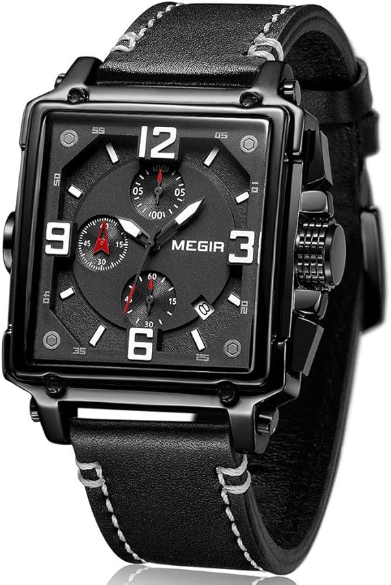 Megir Herren Uhren Rechteckig Schwarz Leder Armband Wasserdicht Analog Chronograph Manner Uhren Sport All Black Edelstahl Gehause Mit Datum Jetzt Unschlagbar Gunstig Shopping24 De
