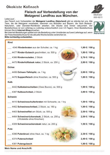 Fleisch Auf Vorbestellung Von Der Metzgerei Landfrau Aus Munchen